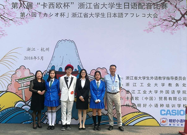 5月13日,“卡西欧杯”浙江省第八届大学生日语配音比赛决赛在浙江工业大学举行。我校东方语言文化学院选派的由日语1501班邵言、日语1601班叶晨茜、日语1702周子彧、俞江超组成的团队获一等奖(指导教师吴毓华、吴玲及日籍外教冈田重美)。 东语学院学生团队用标准的日语发音重现了日本著名动漫《名侦探柯南》中的经典片段,选手们声音贴近角色且具有高辨识度和爆发力,深深打动了评委和现场观众。 本次比赛旨在纪念中日缔结友好条约40周年,由浙江省大学外语教学指导委员会主办,共吸引浙江大学、浙江工业大学、浙江师范大学、浙江外国语学院等及我校在内的全省26所高校代表队参与,比赛设特等奖一项、一等奖两项、二等奖三项、三等奖四项。 作为浙江省高校日语专业学生、日语爱好者学习和交流的大型赛事活动,日语配音比赛深受省内高校学生喜爱。比赛宗旨在于进一步繁荣高校校园文化、丰富大学生的日语学习方式、提高学生日语应用能力和跨文化交际能力,为广大日语专业学生和日语爱好者提供交流和展示的平台。